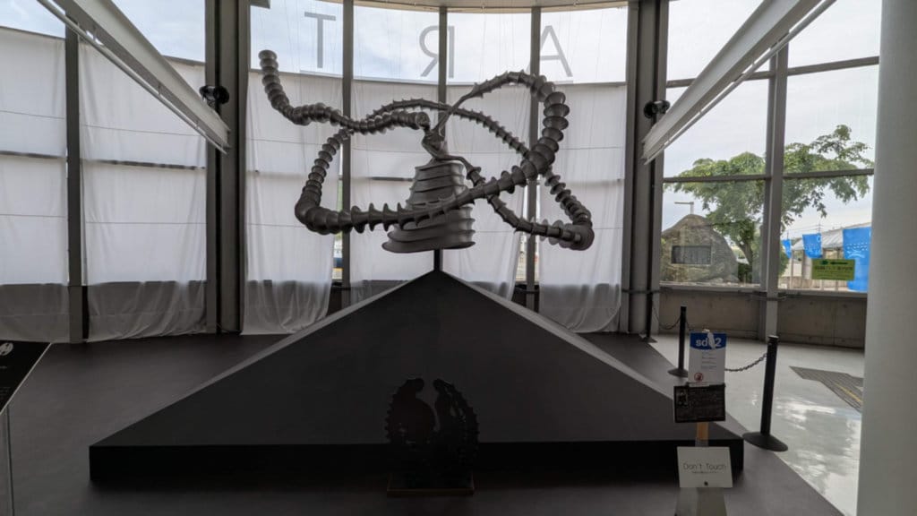Inside the Okayama Ferry Terminal, renamed "Art No Show" a few years ago when it began to be used as an art gallery, especially for dresses and sculptures by fashion designer Junko Koshino.