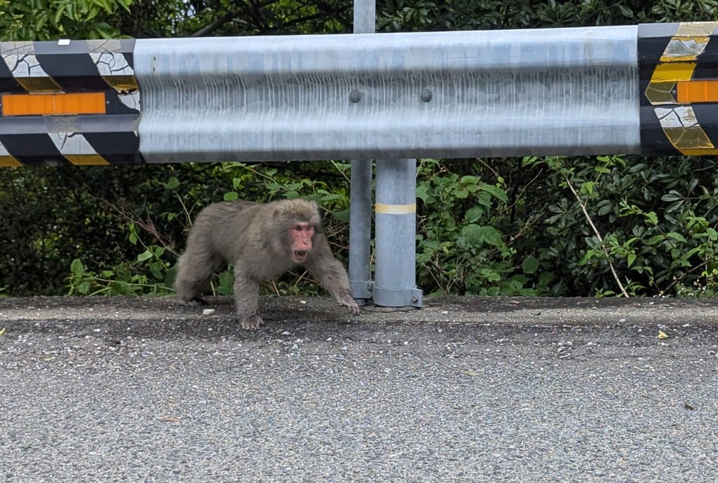 Shodoshima is the only island in the area with wild monkeys, and they're often seen on the side of the road. This monkey was not happy that I stopped to take a picture without asking. So, I didn't stay long (don't mess with monkeys, ever).
