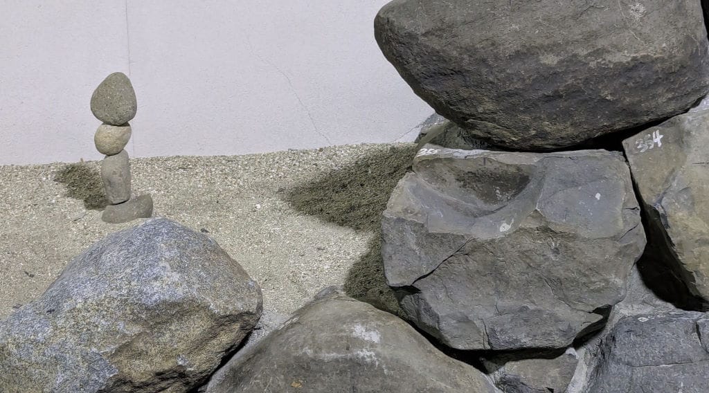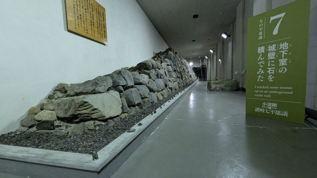 The "Seventh Wonder" is hidden outside the museum, but there are signs and hints to help you find it. It's a collection of small stone stacks by Ozawa, located on and around one of the original walls of Takamatsu Castle.
